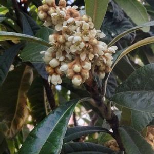 今日のお花は 目立たないクリーム色の花を咲かせる ビワ(枇杷)です。 ヒワは実の形が楽器の琵琶に似ていることから そう名付けられたのだとか…。 ビワは自家受粉が可能で 初夏に黄橙色に熟したビワの実を付けます。 ビワの種には高濃度のシアン化合物が含まれている可能性があるので 食べないよう注意してくださいね。☝️✨ 中国南西部原産。 バラ科ビワ属の常緑小高木。