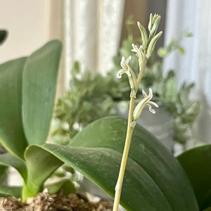 ハオルチアの花🪷 変わったお花! みょーんと伸びて長いので、本体は入らずです(_ _).。o○