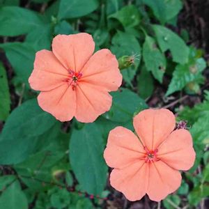 日陰の山道。林の中に、朱色の花弁が平べったくなっている花に目を引かれました👀 最初見つけた時、こんな所に日々草が咲いている?🤷と思いました😲 雰囲気がよく似ていますね😃 花の大きさは5cm位 広島の山から 標高1000m位