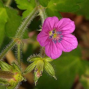 今日のお花 ゲンノショウコ(現の証拠) 花径1センチと小さな花ですが赤紫色の色合いが目立ちます♡ 東日本は白花、西日本では紅花が多く見られるフウロソウの仲間です。 花期は7月から10月と長く楽しめる可愛い花ですね。◕‿◕。 薬草として下痢止めや胃腸病に効果があるとされています。その効果がすぐに現れるとされています。名前の由来はこのことからです。