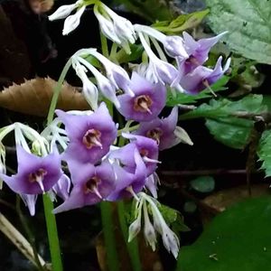 ✼ イワタバコ ✼ 星形の花を下向きにして咲いていました。 紅紫色の中心部には黄橙色の斑紋がありアクセントになっていますね🧡 湿った岩場の日陰で涼しいそうに咲いていましたよ🎶 イワタバコ(岩煙草)の大きな葉がタバコの葉に似ているというのが名前の由来です。