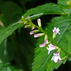 ✼ ハエドクソウ ✼ 山道の日陰で直立した枝にまばらに5ミリ位の白い小さな花を咲かせています🌸 筒状の萼の背側が紅色になっています。 白い花のアクセントになって可愛らしさをより引き立てますね💞 とても可愛い花なのに名前がちょっと…💧💧💧