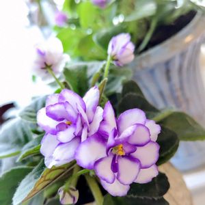 ミニセントポーリア 暑さに負けず爽やかに咲いてくれてます 奥は1月に葉をカットして小さくなったミニセントポーリア、また元気に咲きだしました✨1年中くり返し咲く、丈夫ないいコ😊 ➁丈夫ないいコの子どもたち、すでに4つお嫁に出して、このコたちも花が咲きだしてるので早く嫁ぎ先を決めてあげねば ➂マジックアマリリスが根付き、葉もたくさん出てきました!鉢が小さいから植え替えたいけど暑いよね…