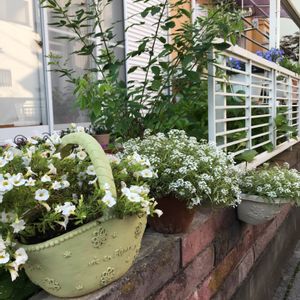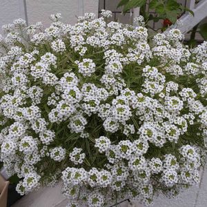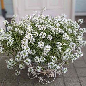 スーパーアリッサム フロスティナイト 梅雨時なので、軒下管理です🤍 いっぱい咲いたよー