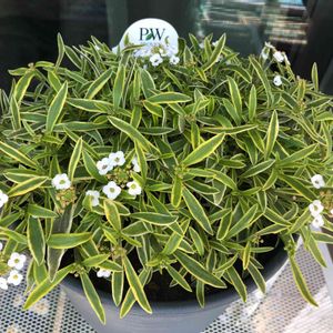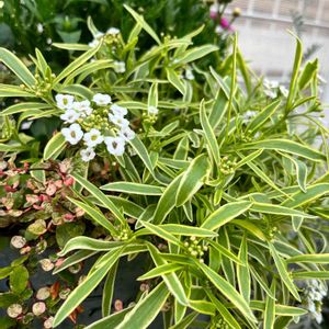 こんにちは スーパーアリッサムフロスティナイト 斑入りと白い小花が可愛い💕 軒下で冬越ししたので、花壇より葉が綺麗🌿 まだ満開とはいきませんが、蒸れが気になるので、一回切り戻しかな💦