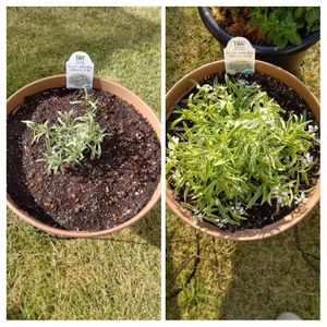🌟爽やかな白いお花の寄せ植え この子のお世話をしてるときは、ラベンダーの香りが心地いいです😊 この寄せ植えの成長した姿がとても楽しみ🌼