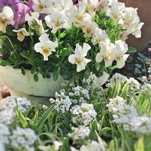 自ら背中を押して買った😅高級なゲブラさんちの『ステラブルー』 と『スーパーアリッサム フロスティーナイト』 猛威を奮っているウィルスに気分が⤵︎ 白いお花で癒されたい気分。
