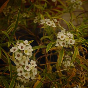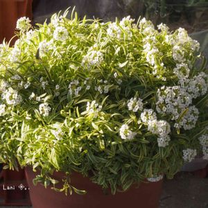 こんにちわ•ᴗ•♪ ☘スーパーアリッサム☘ 〈フロスティーナイト〉 昨年の11月お迎え 葉っぱに 💛の斑入りで とてもステキな スィートアリッサム! お手入れ不要で ぐんぐん 成長しています! お花もチラホラと… 上は仙人草🌿🌿🌿 *🍃.。.*゚🍃*.。.🍃*゚ 🏷8日は葉っぱの発表会 に参加させて頂きます🪴