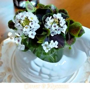 クローバー🍀&アリッサム🤍 増え過ぎたクローバー、今まではカットして処分🗑️ 小瓶に挿してみたら 何気にイケると知りました♡🍀 これからは飾った後 さよならコースで〜す😅