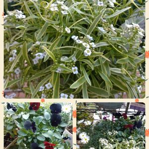 左上↖️がハクサンさんのアデール、左下が華あられ、右下がアデール、華あられ、イリスプリエール、スーパーアリッサムフロスティナイトを寄せ植えにしたものです(* 'ᵕ' )☆癒される(* ´ ` *)ᐝ︎💕