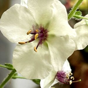 〜バーバスカム ブラッタリア アルビフローラム〜 とても長い名前の花です 5月に最初の花が咲き、剪定後3度目の花が咲いています 一昨年花屋さんで買い求め、種を採り、昨年の春に種を蒔きました 昨年はずっとロゼット状態のまま花は咲かず冬を越しました 花は咲かないのかな?と思ったら今年の春になって茎を1メートル以上伸ばして5月頃咲き始めました 花後剪定したらまた咲いてくれてもう3度目です こんなに綺麗な花をずっと楽しめるなんて思いませんでした ゴマノハグサ科 モウズイカ属 花言葉「臨機応変な態度」 線状降水帯が発生している地方の皆様どうぞお気を付けてお過ごしくださいね 被害が出ません様に願っています🙏
