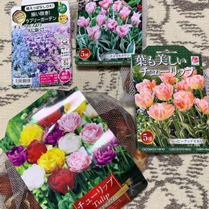 投稿を忘れてました😅球根ゲット 去年いろいろあったHCに行くと、あれ少ない🙄 出遅れた?! 時間もなくてゆっくり考えられず似たようなのばかりになってしまいました😂 オキザリスで埋まる花壇に去年も20球ほど仕込んだのですが、思ったより少なく感じたので今年は50球😁 八重咲きタイプにしてみました あれ?よく見たら4月下旬から5月上旬に開花?! オキザリスボロボロな時かも😨失敗した?! あれ😰今年ゲットのチューリップ⸜🌷︎⸝球根は全部が開花時期が遅めかも💦 クロッカス 紫花種 絞り咲き種 白花種 プスキニア リバノチカ チオノドクサ ピンクジャイアント ミックス球根 斑入り葉っぱ🌷チャイナタウン 斑入り葉っぱ🌷ハッピーアップスター 八重咲き混合🌷50球
