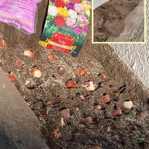 とにかくチューリップ球根を仕込まねば!っと3日前に花壇に50球の八重咲き🌷をギュウギュウ埋めました✨ いつかは穴掘ってゴロゴロ投げ込む植え方がしてみたい! そんな勇気は今年も出ず結局1個づつ並べていきました😂 教えていただいた球根シリカもパラパラ撒いて土をかぶせて力尽き😵💫 他の球根はまた先送り💦 今朝、見ると😳掘られてる?! 土が淵から溢れているのに気が付きました 球根が3つほど見えてる💦 1個は芽が出てる🤭♪ 最近はお散歩する猫も見ないのになんでしょう?🙄