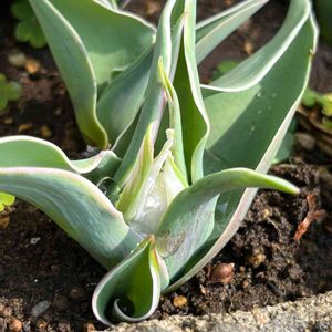 チューリップ(〃艸〃)チラ見え〜💕 50球ミックスの大袋 植え付けも遅かったので心配していました 斑入りの葉っぱのが先に出てきたようです