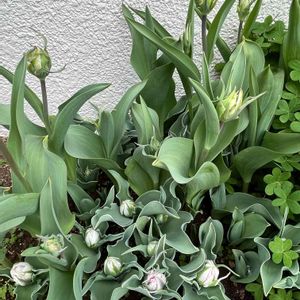 50球ミックスチューリップ 好みの白が咲きだしました😚✨♡ 以前に似てるのを育てています 単品(5球入り)で購入するお得かも🤔白だけで15球はあります ピンクの方も少しづつ茎が伸びてきてボリュームのある花が膨らんできています🎶