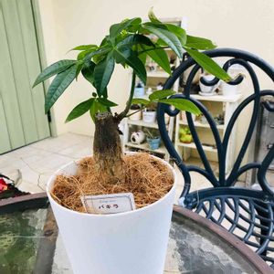 ダイソーで、ひと鉢だけ残って元気のなかった300円のパキラ🌱 鉢を買って植え替えたら元気に❣️ よかった〜☺️