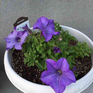 昨年末に葉牡丹と寄せ植えしてて、サフィニアに衣替え😆🙌 5/19日に投稿したジプシー・ディープローズのホワイト版🤭 こちらも、まだモリモリです🤗🎶 チーム・ブルーのお祝いpicです😆💐🎊☘️ これからも宜しくお願いします🥰💙💜