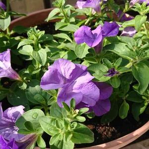 サフィニアイエローとヘブンリーブルー混色植え 大分成長し花数が増えてきました 今のところ病気にもならず順調です