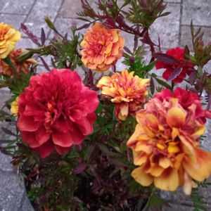 ホームセンターで目に止まったので、マリーゴールドをお迎えしました。 多彩な花色になるマリー(ファイヤーボール、ストロベリーブロンド2色植え)