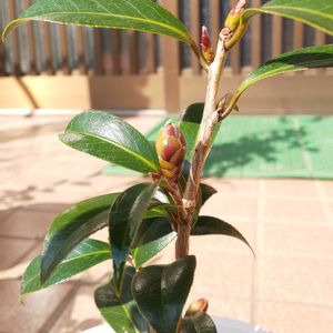 ツバキ(湊晨侘助) 蕾が膨らみ出しました❗️ 昨年晩秋に買ったもの。咲くのが楽しみ😊 さだまさしさんのアルバムの中の曲「春告鳥」で侘助という言葉を知り、当時は「そういう名前の花なんだ」程度にしか思ってなかった。 それが椿の品種のひとつと知ってまだ日が浅いです。お恥ずかしい限りです😓 侘助という名前を見て、「春告鳥」が思い出され、衝動買いした一品😊