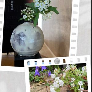 「今日のお花」小手毬🤍🌿過去picです 東京ドームで撮った 辻村史朗さん作の花瓶に入れられていたコデマリが素敵でした。 下は我が家の挿し木をして咲いたコデマリのお花です🤍🌿 🍋🌱🍋