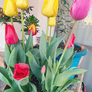 大!中!小! さまざまな色と形のチューリップさん🌷 昨年掘り上げた球根さんです🌷 小さくてもちゃんと蕾をつけてくれるのですね〜可愛いです🌷