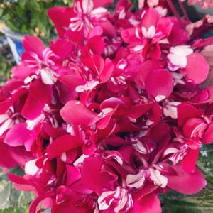 もりもり満開シクラメンさん❤️ 朝から数えるとなんと97本密でした💦 そしてまだ蕾も待機中✨ しっかり春のお花なんですね〜💕 寄せ植えの葉っぱたちが窮屈そうで… お花が咲き終わると植え替えに忙しくなりそうです😊