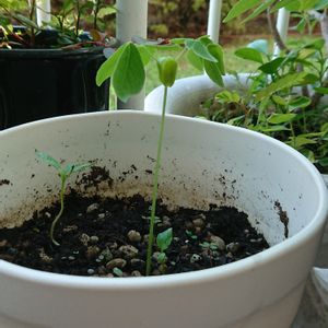 2019/08/07 モンキーポッド~この木なんの木気になる木🌳 二郎🌿&一郎🌿 二郎は1年間土の中で発芽のタイミングを待ってたのかな? このあと、先に投稿した8/22の三郎誕生に続きます🌱 三郎&四朗&五郎は今年の春先に種を蒔いて、残暑に発芽しました~🌱🌱🌱