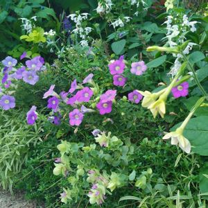 ここのコーナーはライム繋がりを意識してみました。 主役はスーパーチュニアスカイブループラスです❀.*・゚ 地植えでも頑張ってくれてます!