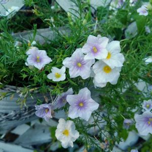 ニーレンベルギア🌸 自分で種まきしたのに名前がずっとわからなくて最近やっとわかってスッキリ😊 リメ缶でハンギングにしてみました。