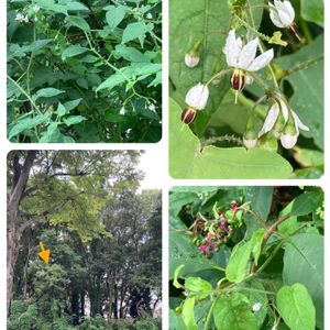 ヒヨドリジョウゴ ナス科 つる性 熟した果実にヒヨドリが群がって食べる姿が酔った人(上戸と言う)にてるからの名 いつも貴重品をみるようなものが→ほどの木いっぱいに絡まっている 横にも広がっている😅