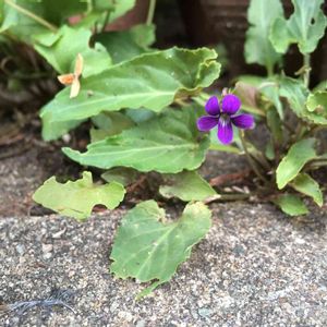 玄関のコンクリートの隙間。 山のすみれが一輪咲いていました。 今頃? だから、玄関前の隙間に一直線に並んでるこれ! 「なんで、ここの〈草〉抜かないの?」と言う人も居るけれど、春の事考えたら、抜けないんですねぇ〜。 わ た し!