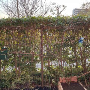 わが家の駐車場の奥です😃✨ クレマチス4つとつるバラ、木立バラを置いてます😋(ひっつめすぎ😅) つるバラはフェンスのピエールさんしか 仕立てた事なかったので今年はこの場所でも挑戦してみました💖 クレマチスとのコラボ達成なるか🥺✨? 楽しみです😃 まだまだつるバラ仕立ての経験値低いのでとりあえず鳥よけネットに誘引🤣(ちょっとカッコ悪い😑) これがお花で覆い尽くされるのを夢みて 毎日のお世話がんばります🌹💕