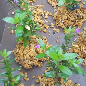メキシコハナヤナギ(クフェア) 🌱🌱🌱🌱🌱 挿し木から半年あまり、☔も降って、植え替えにはちょうどいいかも……😄。 『これから、頑張って下さいヨ〜😍』。