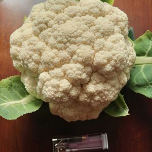 おはようございます😊 カリフラワー(直径20㎝) 昨年9月7日に苗を植えたが 雨が少なくなかなか大きくならずヤットです💦 ブロッコリーもキャベツも巻き悪く区民農園全体秋野菜不作です💦20年作ってますが初めての事👀‼️( ´-ω-)y‐┛~~ 余談ですが今日の投稿で555 花友さんに知らされゴーゴーゴーだそう毎日1投稿で頑張ります🥰 皆様いつもご覧頂きありがとうございます🙇🎶