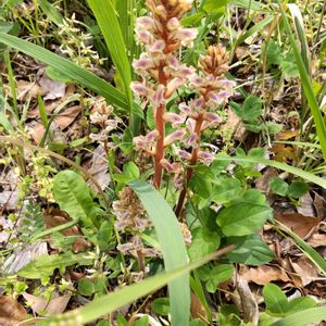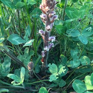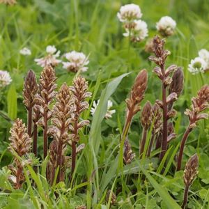 ヤセウツボ 葉緑素を持たないため全体に褐色で、マメ科などの植物に寄生し、特にシロツメクサが群生している所で見られる ウツボってネーミングがねぇ 土手の春の常連さんですね