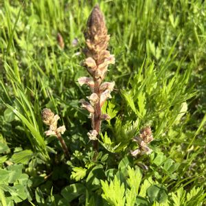 久しぶりに、川向こうの土手をぶらつくと、 こんなに生えていたのか~😲💦というくらい、ヤセウツボが生えていました。 だいぶ、花は、咲き進み、枯れた部分が目立っていましたが、紫色っぽい部分も残っていました。 マメ科のシロツメクサなどを中心にキク科やセリ科、ナス科、フウロソウ科の植物の根にも寄生して、養分を吸収しているということ ですが、 ムラサキツメクサの近くで見かけることが、断然、多いです(^.^)