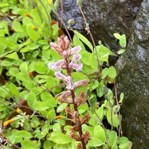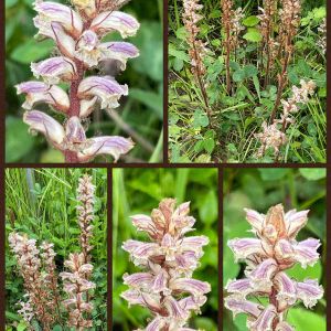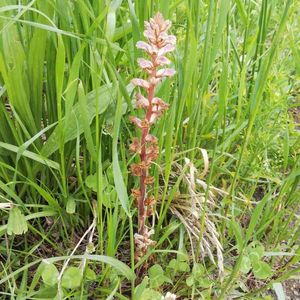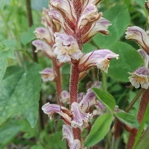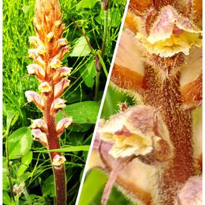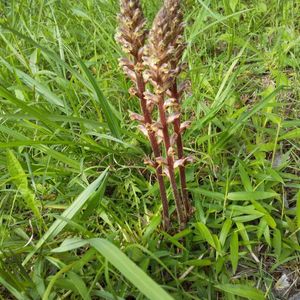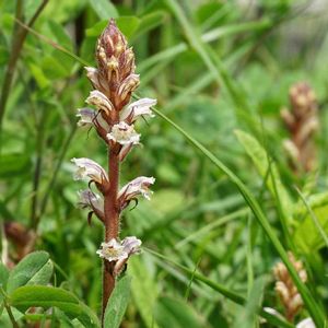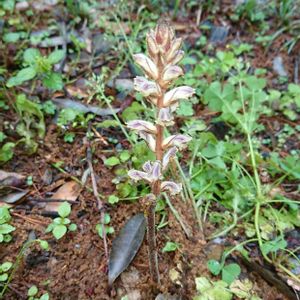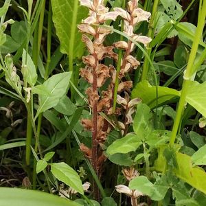 ヤセウツボの親子 ハマウツボ科ハマウツボ属に分類される寄生植物の一種。地中海沿岸原産 マメ科やキク科、特にシロツメクサが群生しているところで見られる 草にも寄生するのね