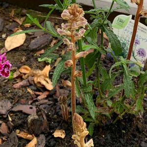 バーベナの根元から出てきた、この植物はなんでしょうか? 教えてください。