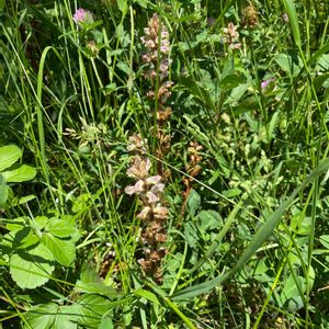 𖤣𖥧 ヤセウツボ 𖥧𖤣 痩靫 ⚠️要注意外来生物 マメ科やキク科などに寄生する寄生植物🌿 ここではアカツメクサに寄生。 *花言葉*『依頼心の強い』