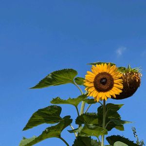 こんにちは☀ 関東地方も梅雨明け これから10日間は 晴天🌤️が続く予定・・・ ヒマワリ ひねくれた彼女は 東側(手前)と北側を 向いていました🤓 翌々日、ミツバチ🐝さん