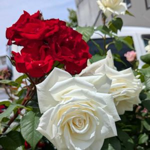 おはようございます☂️ 三河地方☂️降り 吐息を白い薔薇に変えて♬ ちょっとお出かけ先にて🤳