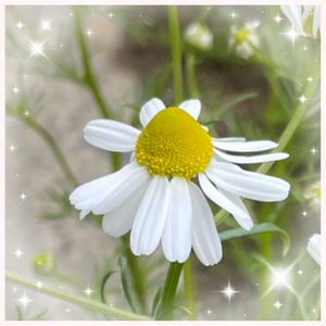 溢れ種からカモミールのお花が咲きました♬ ③蝶々🦋1番さん見〜つけた❣️ 職場にて♬