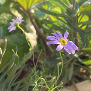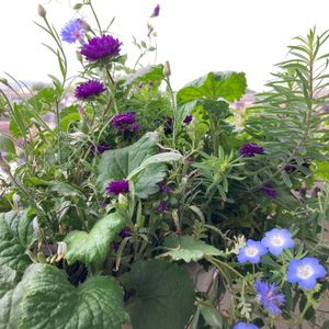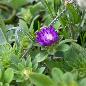 わっさわさになったブルーフラワーミックスの中から新顔🌸 エゾギク(旧アスター)かな? ぎゅうぎゅうなせいか、1cmくらいしかなくて、めちゃかわいい🥰
