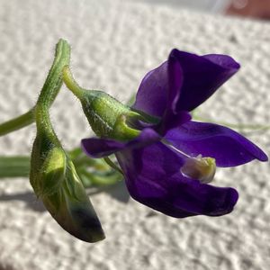 家に帰ったら咲いてました② ブルーフラワーミックスで大暴れしてるマメ科さん、スイートピー、ですよね…? こんな濃い色は初めて見ました😳