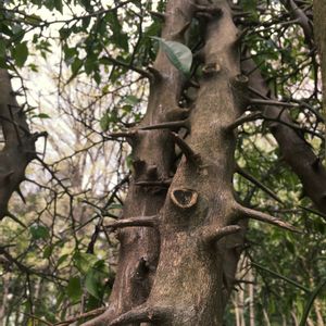 柑橘系の葉っぱのキョーフな木を発見! なにも そこまでトゲトゲしなくたって…