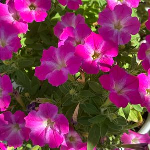 ペチュニア ①②2回目の満開この後切り戻し ①ビスタミニ 8号鉢 春は色が濃かったが白が多くなって可愛くなった🥰 ②小梅ちゃん 8号鉢 途中雨で満開前に切り戻したけど回復が早い ③あずきフラッペ 6号鉢 5月に購入した苗、花が咲きだした🌸 横に広がり易いようで鉢から枝垂れそう