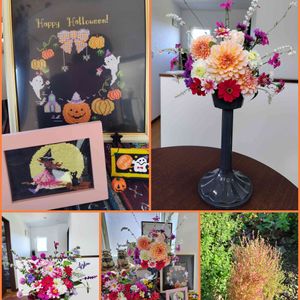 こんにちは😊 今朝の投稿から一転して、こちらはハロウィン🎃カラーの投稿です😂 2階の窓に続き、今日は玄関をハロウィン🎃仕様にしてみました💓 今は庭仕事に燃えてるので、去年のハロウィン🎃の刺繍を飾りました😂 フラワーアレンジも、派手に…目がチカチカしますね🤣💦 たった1本だけ、女帝さまの手にかからなかったコキアが色づいてきました💓 私はこのコキアを“奇跡の1本コキア”と呼んでいます🥹💦 🏷ハロウィン月間でお願いします💓 皆様、素敵な週末をお過ごしくださいね🙌💓