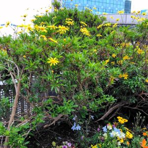 🌼ユリオプスデージが、秋に植えたら、今こんなに大きくなりました🌼 風にゆらゆらして、鉢いっぱいに咲いています♪ベランダにはいっぱい です! 枯れた花を✂️したら次々につぼみをつけています👍 長く楽しめてよかったです💕 きょうは朝から用事でこんな時間の 投稿になりました❣️ GW最後の日、良い一日になりますように😊 *花日記より*🌼🌼 🏷️愛の花♡ 🏷️ありがとうの花❣️ 🏷️花咲く乙女たち♡ 🏷️幸せの黄色いお花
