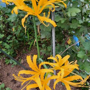 黄色リコリス(ヒガンバナの仲間) 花壇の片隅に咲いてました💛💛 ヒガンバナより遅れて咲くので 気がつかない内に咲いてました😆💕✨🌿
